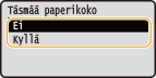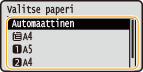 Tämä asetus ei ole käytettävissä, jos <Automaattinen> on valittu kohdassa <Valitse paperi>.