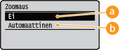 Ota kuvien suurentaminen/pienentäminen käyttöön tai pois käytöstä. Tulosteita suurennetaan tai pienennetään, ja kuvan kuvasuhde säilytetään. Valitse asetus painamalla