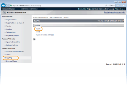 Määritetyt asetustiedot tuodaan laitteeseen.