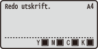 På skärmen visas utskriftsstatus och på vilka skärmar du kan ange inställningar. Även felmeddelanden och återstående mängd toner i tonerpatronen visas.