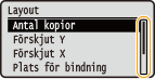 Du kan ange en mängd skärmrelaterade inställningar, till exempel skärmjusteringar och språk med hjälp av <Kontrollmeny> på kontrollpanelens inställningsmeny. Kontrollmeny