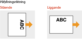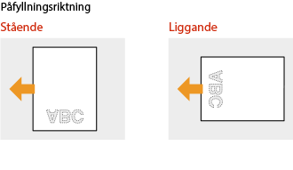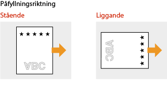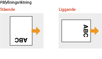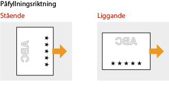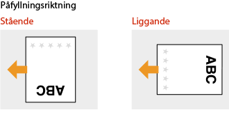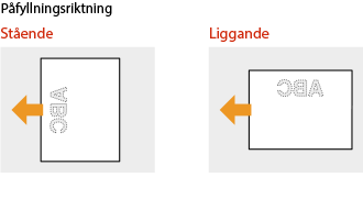 Om du använder papper med logotyp måste du kontrollera papperets orientering när du fyller på. Fyll på papper med logotyp så att utskriften sker på rätt sida.