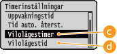 ( <Kontrollmeny>    <Timerinställningar>    <Uppvakningstimer> eller <Vilolägestimer>    <På>    <Uppvakningstid> eller <Vilolägestid>    Ange tiden