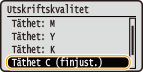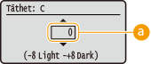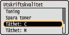 / för att justera tätheten.![]() Justering av tonertäthetAnge ett "+"-värde för att öka tätheten. Ange ett "-"-värde för att minska tätheten.