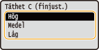 Om <Spara toner> är inställt på <På> kan du inte använda den här justeringsfunktionen. Spara toner