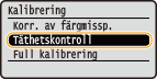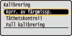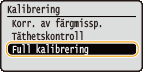 Om en tonerpatron håller på att ta slut kan en kalibrering medföra att färgbalansen blir fel. I så fall är det lämpligt att byta den tonerpatron som börjar ta slut. Kontrollera mängden kvarvarande toner