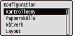 ) på kontrollpanelen öppnas inställningsmenyn. Inställningarna visas per funktion.