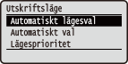 Om alla utskriftslägen är inställda på <Av> använder enheten det utskriftsläge som har angetts för <Lägesprioritet>.