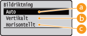 Om den angivna inställningen (<Vertikalt> eller <Horisontellt>) inte stämmer överens med bildens orientering skrivs bilden ut i mindre storlek.