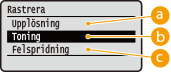 Yttextur och fixerad toner kan få försämrad stabilitet när du använder <Felspridning>.