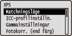 Alla inställningar för XPS-filer som kan skrivas ut med USB-direktutskrift och direktutskrift visas med korta beskrivningar. Standardinställningarna är markerade med ett kors (