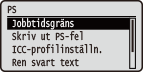 Alla inställningar för PS-kontrollkommandon visas med korta beskrivningar. Standardinställningarna är markerade med ett kors (