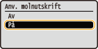 Välj <Av> eller <På> och tryck på