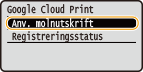 Välj <Google Cloud Print> och tryck på