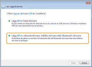 Om du använder Windows Vista/7/Server 2008 klickar du på [Lägg till en nätverksskrivare, trådlös skrivare eller Bluetooth-skrivare].