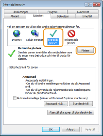 Välj [Betrodda platser] på fliken [Säkerhet] och klicka sedan på [Platser].