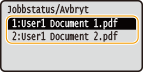 för att välja dokumentet som ska avbrytas och tryck sedan på