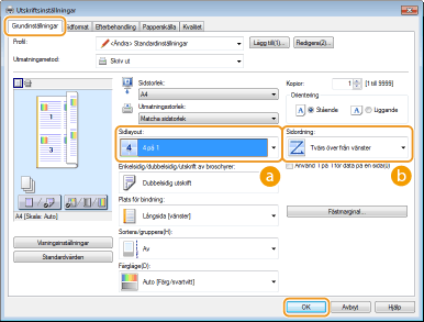 I [Sidlayout] väljer du antalet sidor som ska skrivas ut på ett och samma ark