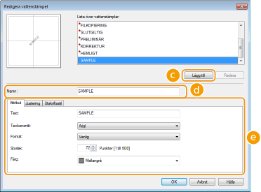 Visar en skärm där du kan skapa eller redigera vattenstämplar.