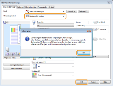 Välj [Redigera/förhandsgr] i [Utmatningsmetod].