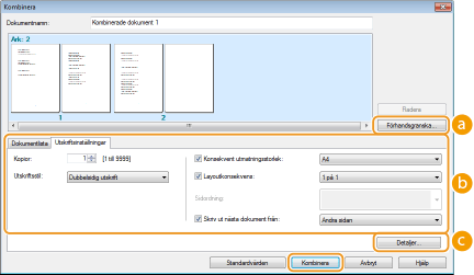 I listan [Dokumentnamn] väljer du det kombinerade utskriftsjobbet som ska skrivas ut och sedan klickar du på
