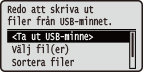 Välj <Ta ut USB-minne> och tryck på .