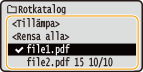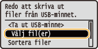 för att välja <Välj fil(er)> och tryck på
