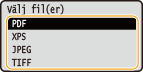 Tillgängliga filformat