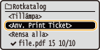 Välj <Anv. Print Ticket> och tryck på .