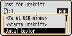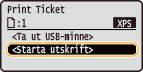 Utskriften startar. Ta bort USB-minnet från enheten när utskriften är klar. Ta bort USB-minnet.