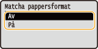 Inställningen är inte tillgänglig om <Auto> har valts i <Välj papper>.