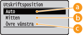 för att välja utskriftsposition och tryck sedan på