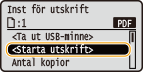Välj <Starta utskrift> och tryck på .