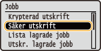 Använd / för att välja <Säker utskrift> och tryck på .