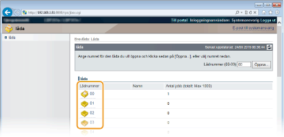 Klicka på numret på brevlådan där dokumentet som ska tas bort är sparat.