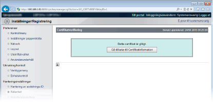 Kontrollera certifikatinformationen och klicka på [Certifikatverifiering].