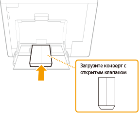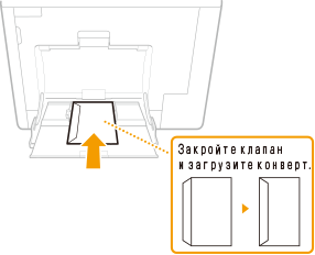 Загружайте конверт таким образом, чтобы отворот был направлен в левую сторону, как показано на иллюстрации.