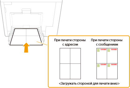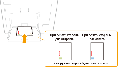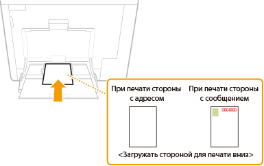 Загрузите открытку стороной для печати вниз и короткой стороной в направлении аппарата.