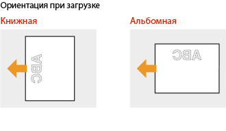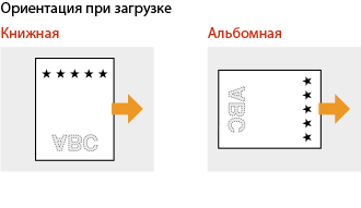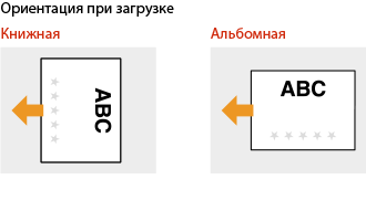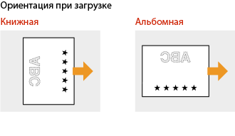 В этом разделе описывается, в основном, как загружать уже отпечатанную бумагу с правильным размещением лицевой стороны и в надлежащей ориентации. Описание общей процедуры загрузки бумаги в кассету для бумаги или в универсальный лоток см. в следующих разделах.