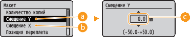 Для точного задания положения печати для каждого источника бумаги можно использовать параметр <Наст. позиции печати> в разделе <Обслуж. пользоват.>. Диапазон доступных значений смещения: от -5,0 – +5,0 мм в вертикальном направлении и от -2,25 – +2,25 мм в горизонтальном направлении. Настройка положения печати