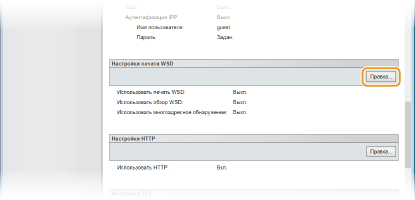 Нажмите кнопку [Правка] в разделе [Настройки печати WSD].