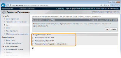 Если WSD используется для печати, установите этот флажок. Если не используется, снимите этот флажок.