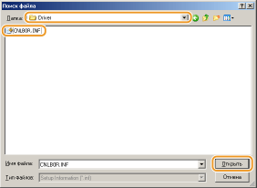 Укажите папку, в которой находятся драйверы принтера, выберите файл INF, затем нажмите кнопку [Открыть].