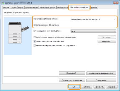 Можно использовать драйвера принтера PCL6, а также драйвер UFR II. Доступные настройки печати отличаются в зависимости от драйвера принтера. Чтобы получить более подробную информацию, щелкните пункт меню [Справка] каждого экрана драйвера принтера.