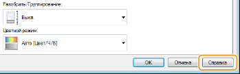 При нажатии [Справка] на экране драйвера принтера отобразится окно справки. На этом экране приведены подробные описания, которые не включены в Руководство пользователя.