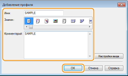 Введите имя профиля в поле [Имя], выберите значок и щелкните [ОК].