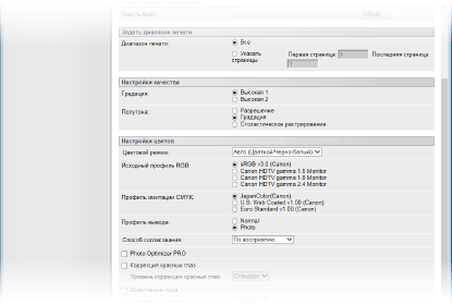 Используется профиль RGB, аналогичный среднему профилю большинства мониторов компьютеров Windows. При использовании монитора, который поддерживает sRGB, можно печатать цвета, более близкие к цветам на экране монитора.