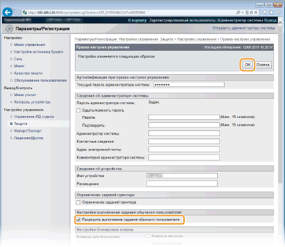 Введите пароль администратора в поле [Текущий пароль администратора системы].