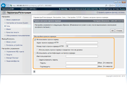 Установите флажок [Использовать прокси-сервер] и настройте необходимые параметры.