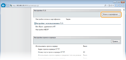 Щелкните [Ключ и сертификат] в [Настройки TLS].